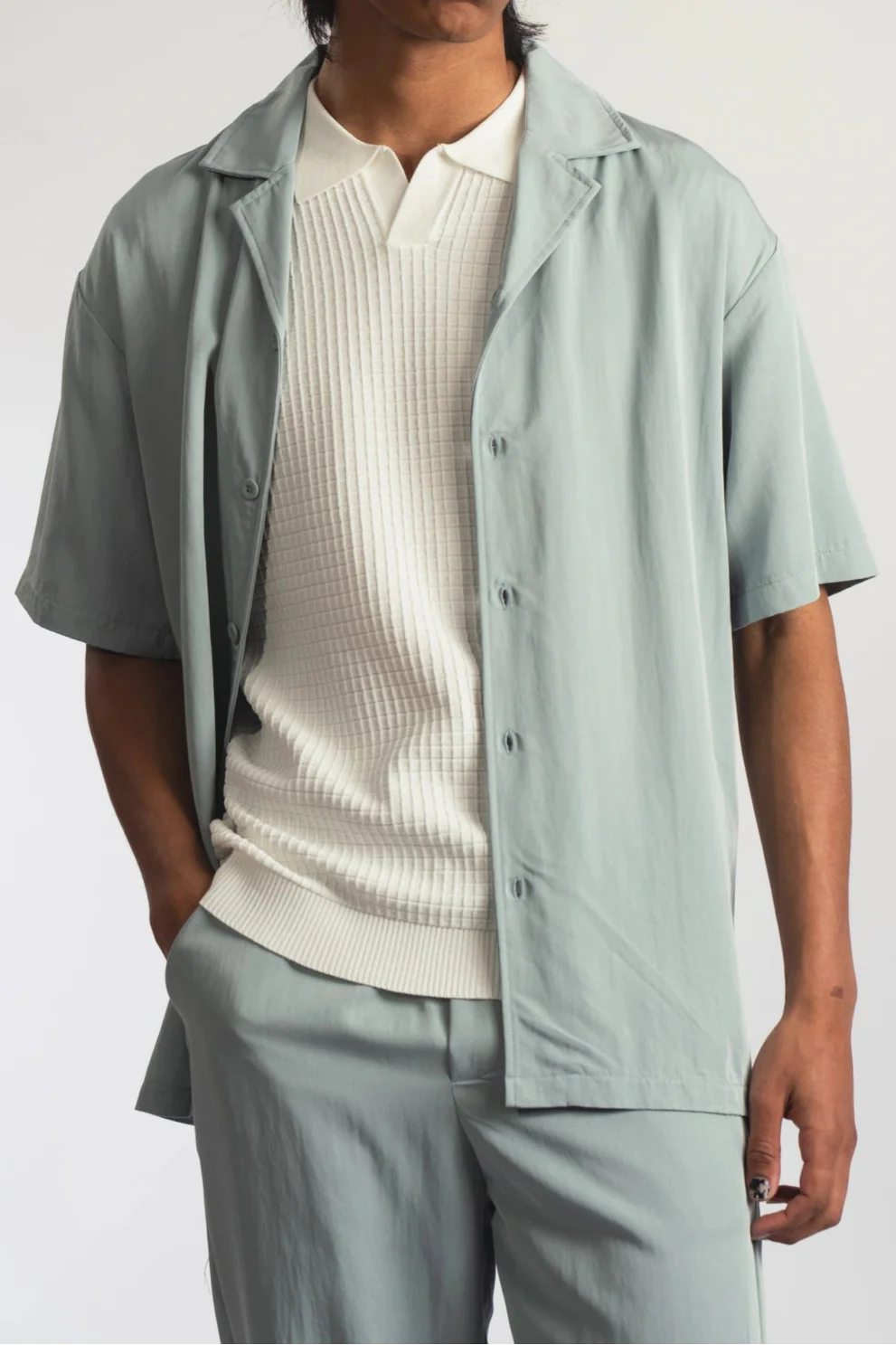 Chemise Décontractée Beige Clair : sobriété et fraîcheur, parfaite pour une journée active en ville ou en déplacement.