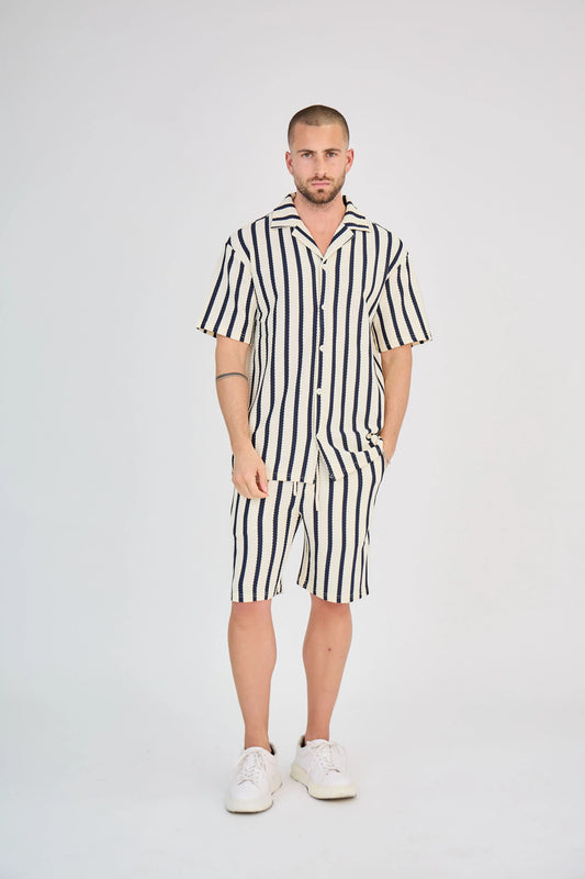 Ensemble Maille Rayée Écru Short