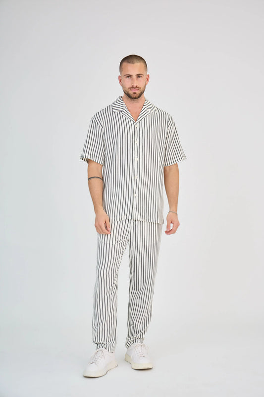 Ensemble Maille Rayée Écru Pantalon