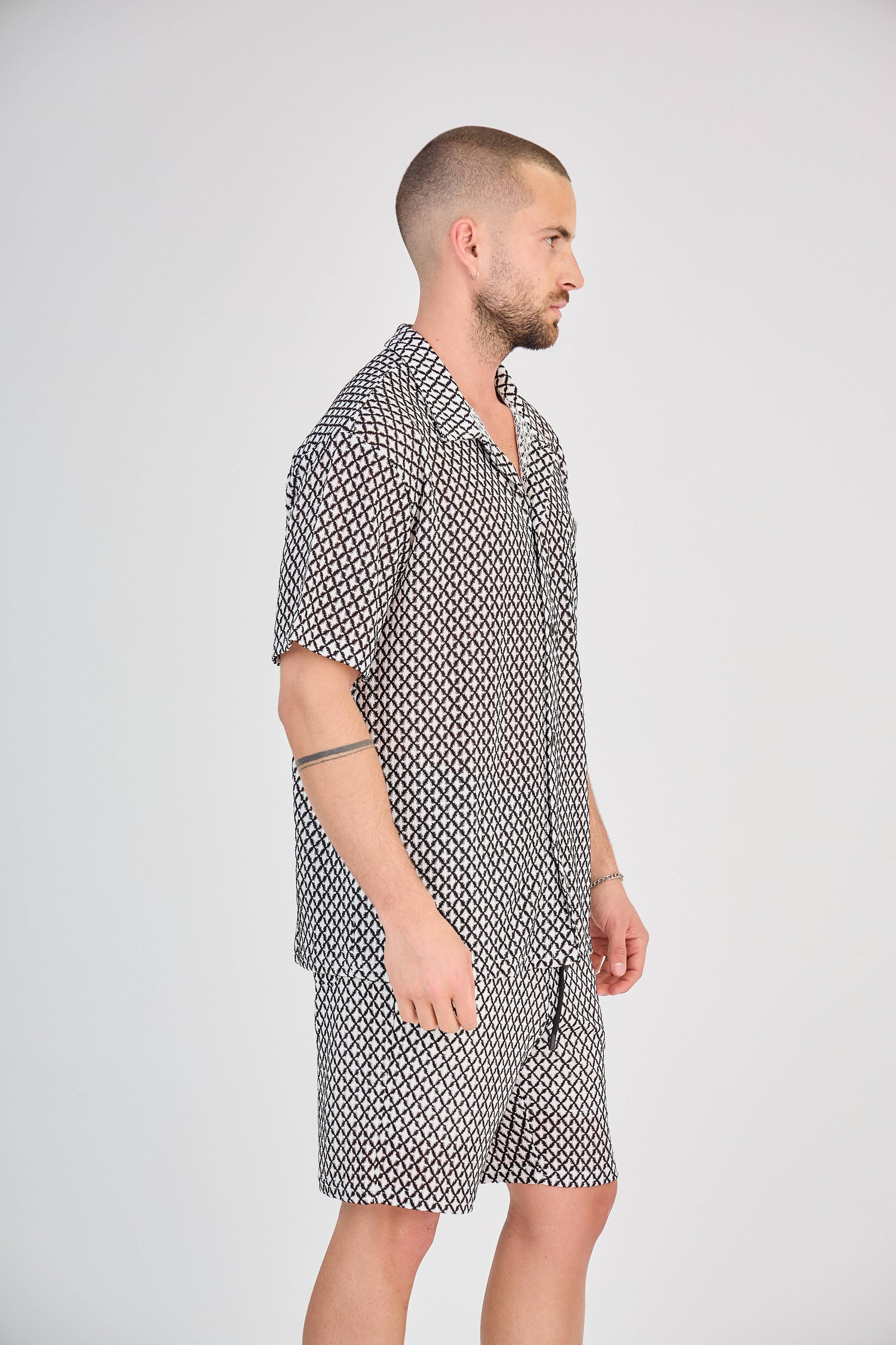 - Short-sleeved shirt with Cuban collar and classic buttoning