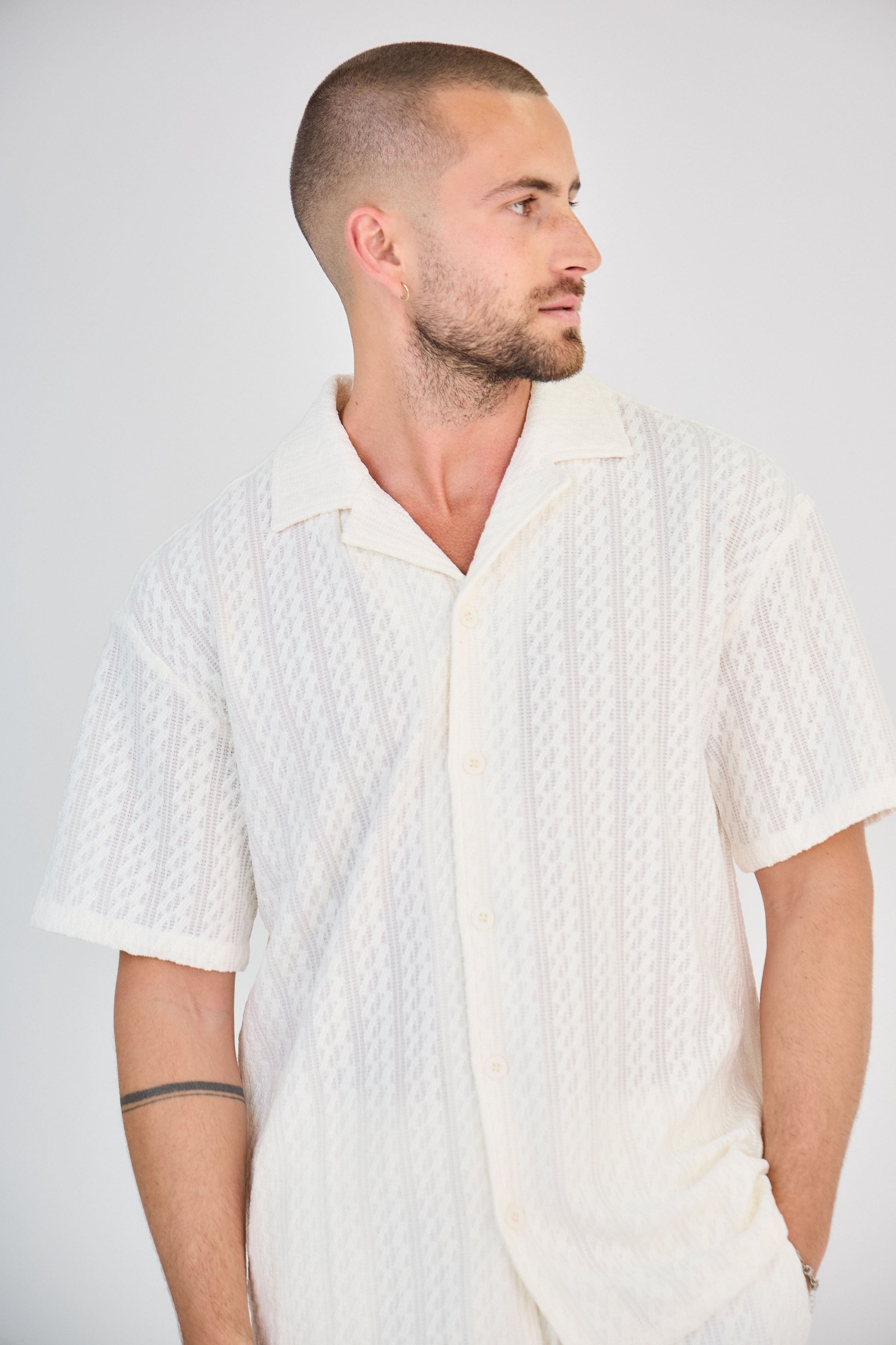 Men's Openwork Knit Set - White