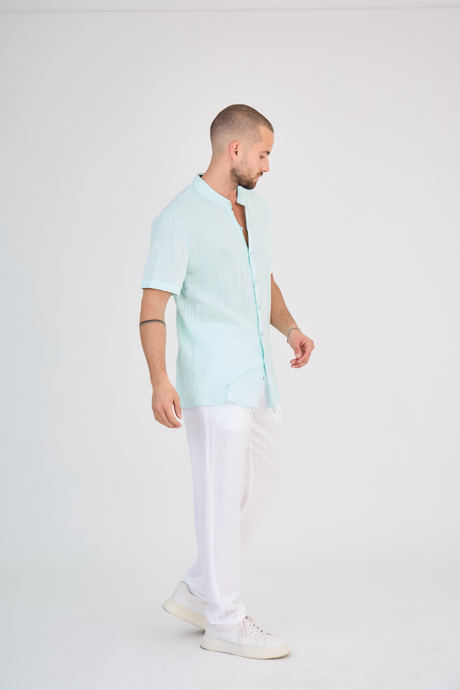 Chemise en Lin Manches Courtes Menthe