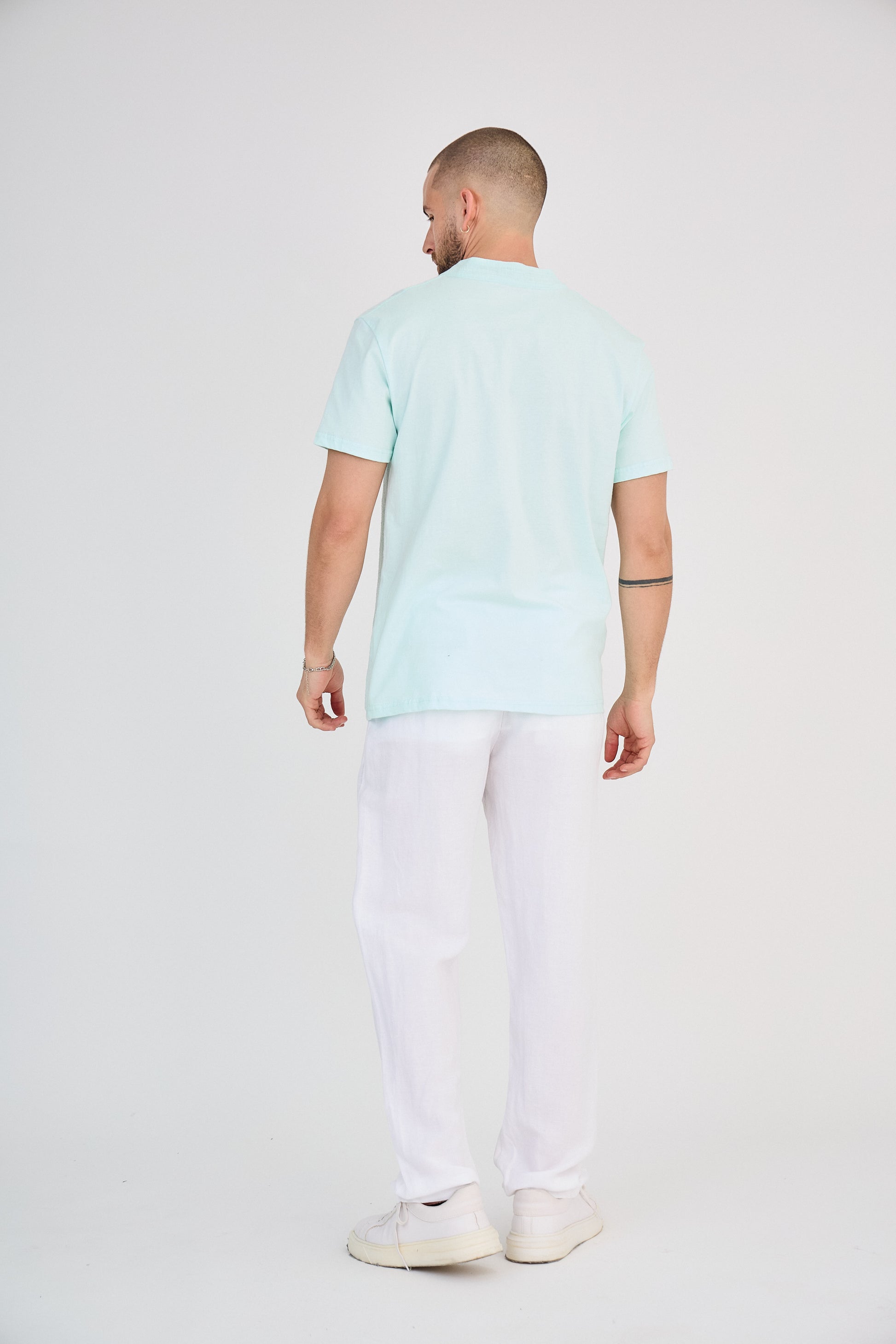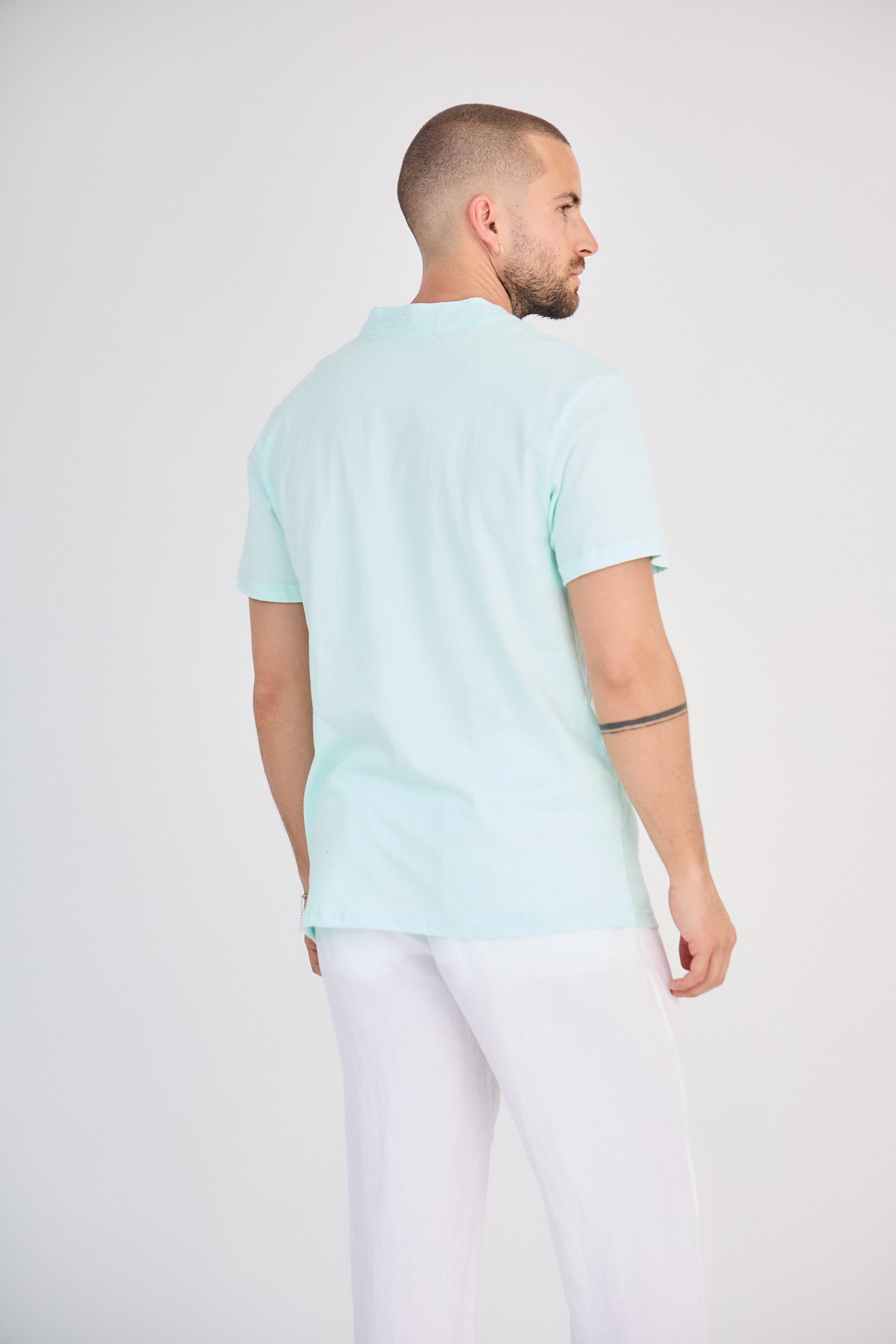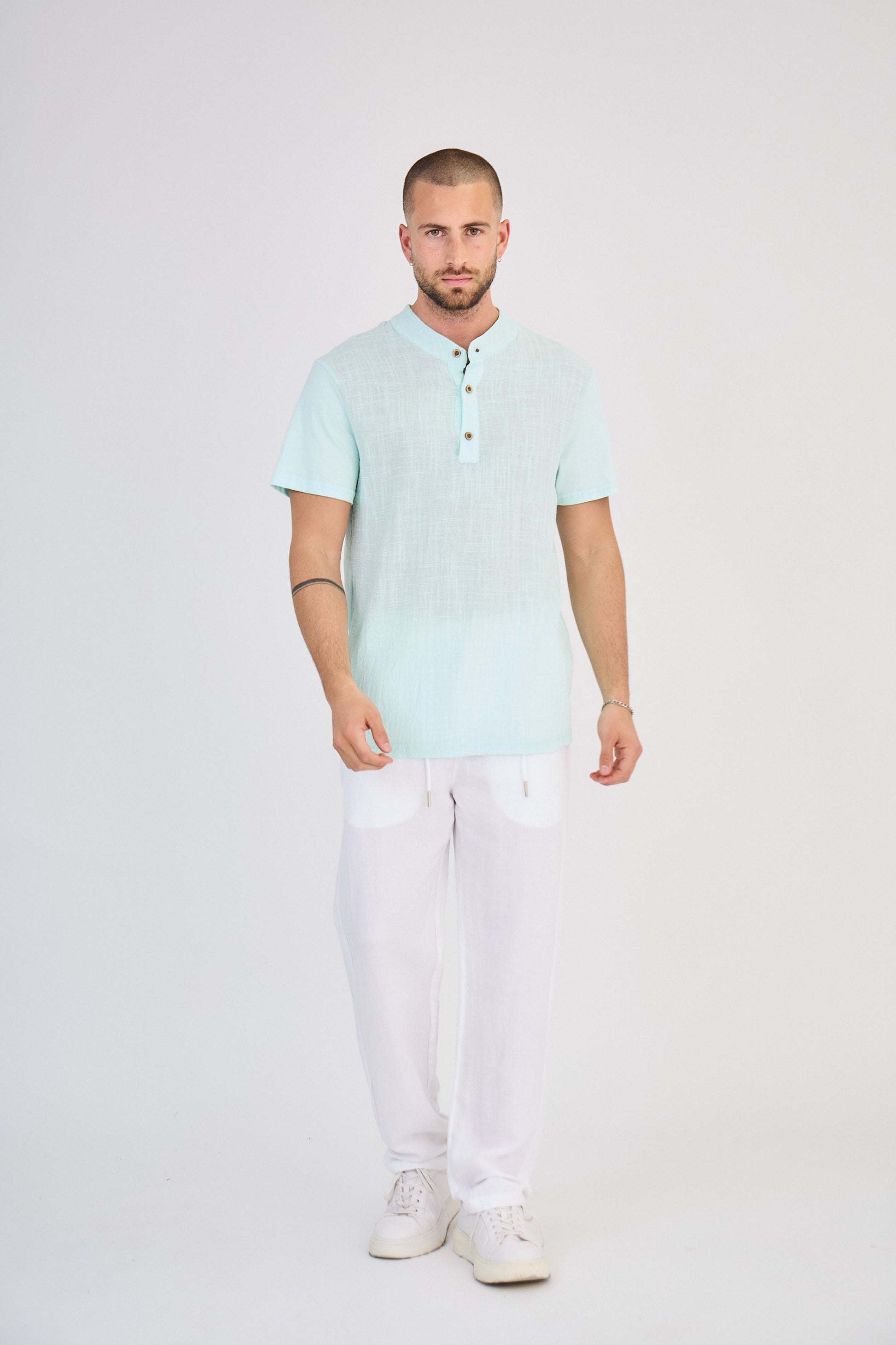 T-Shirt en Lin Manches Courtes Vert Menthe Henley