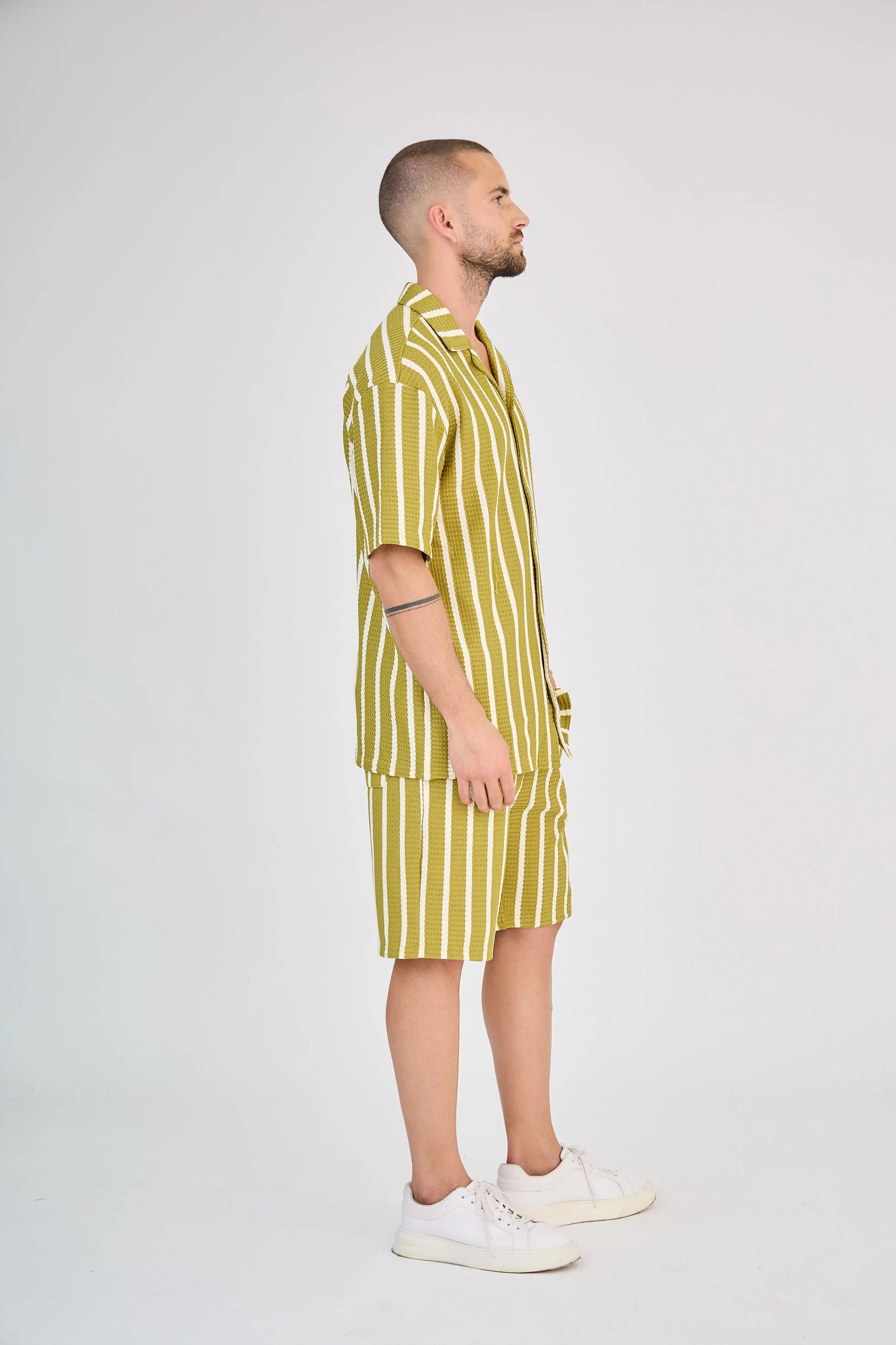 - Chemise manches courtes à rayures en maille nid d’abeille gaufrée