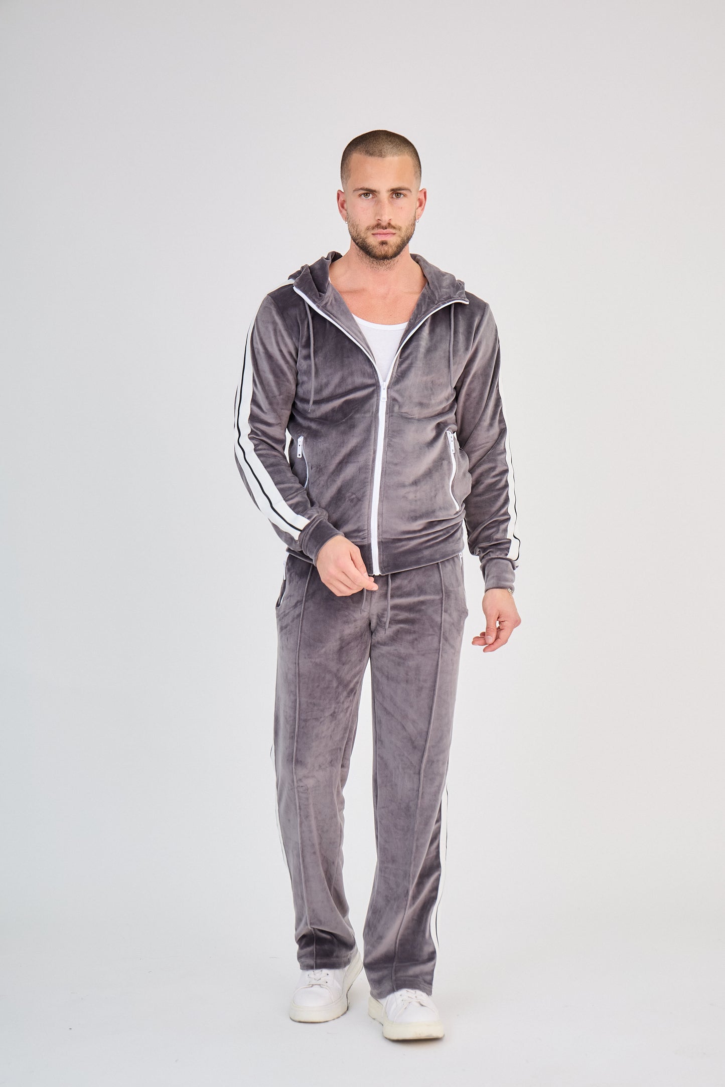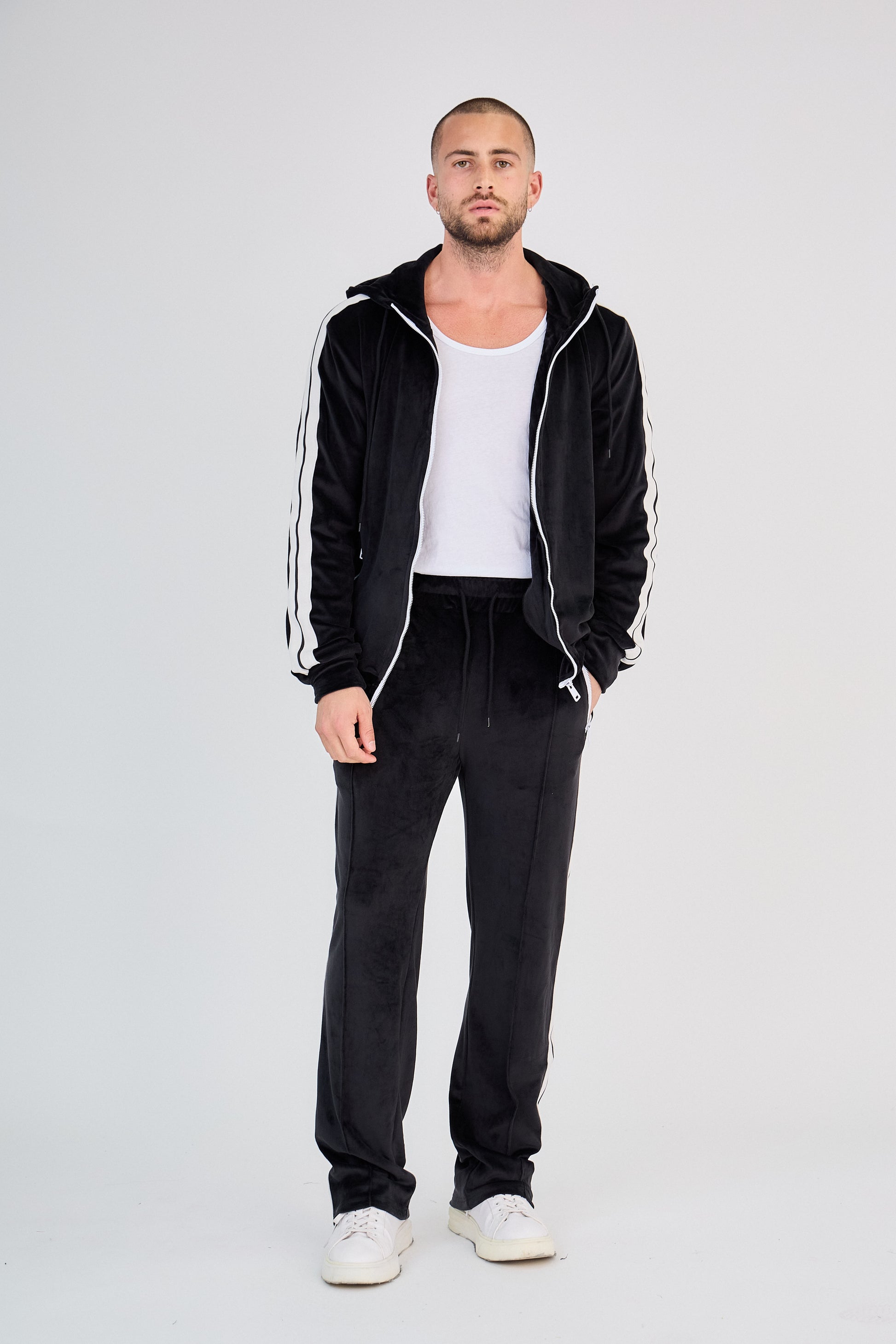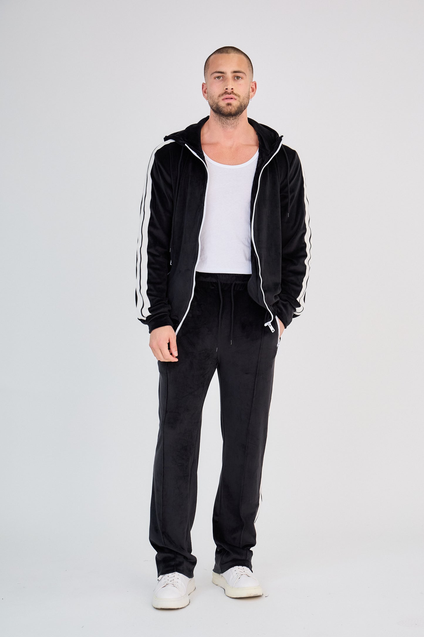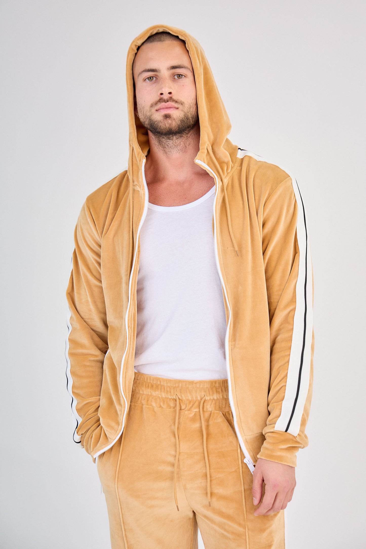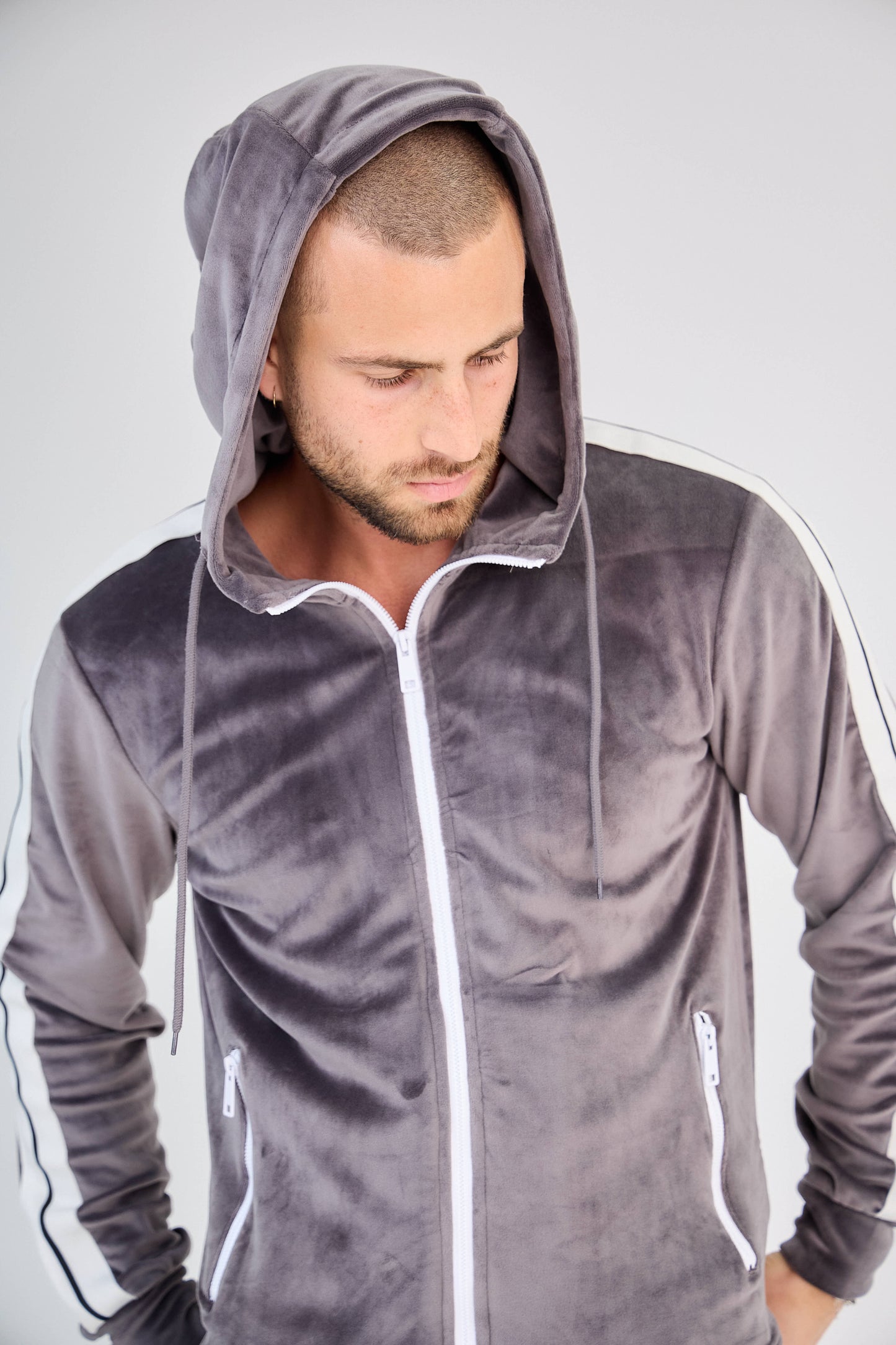 - Hoodie zippé avec capuche et bandes latérales contrastantes