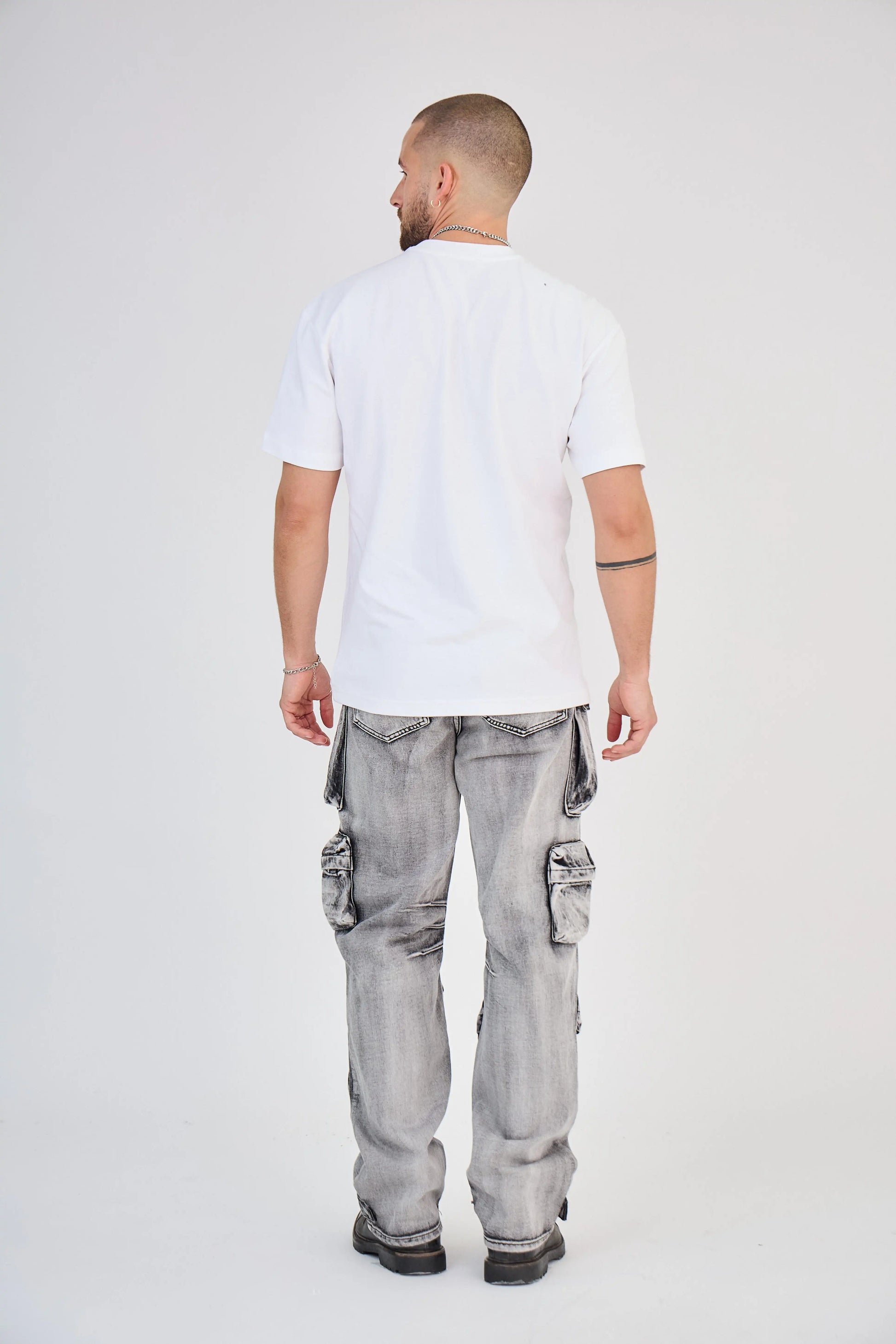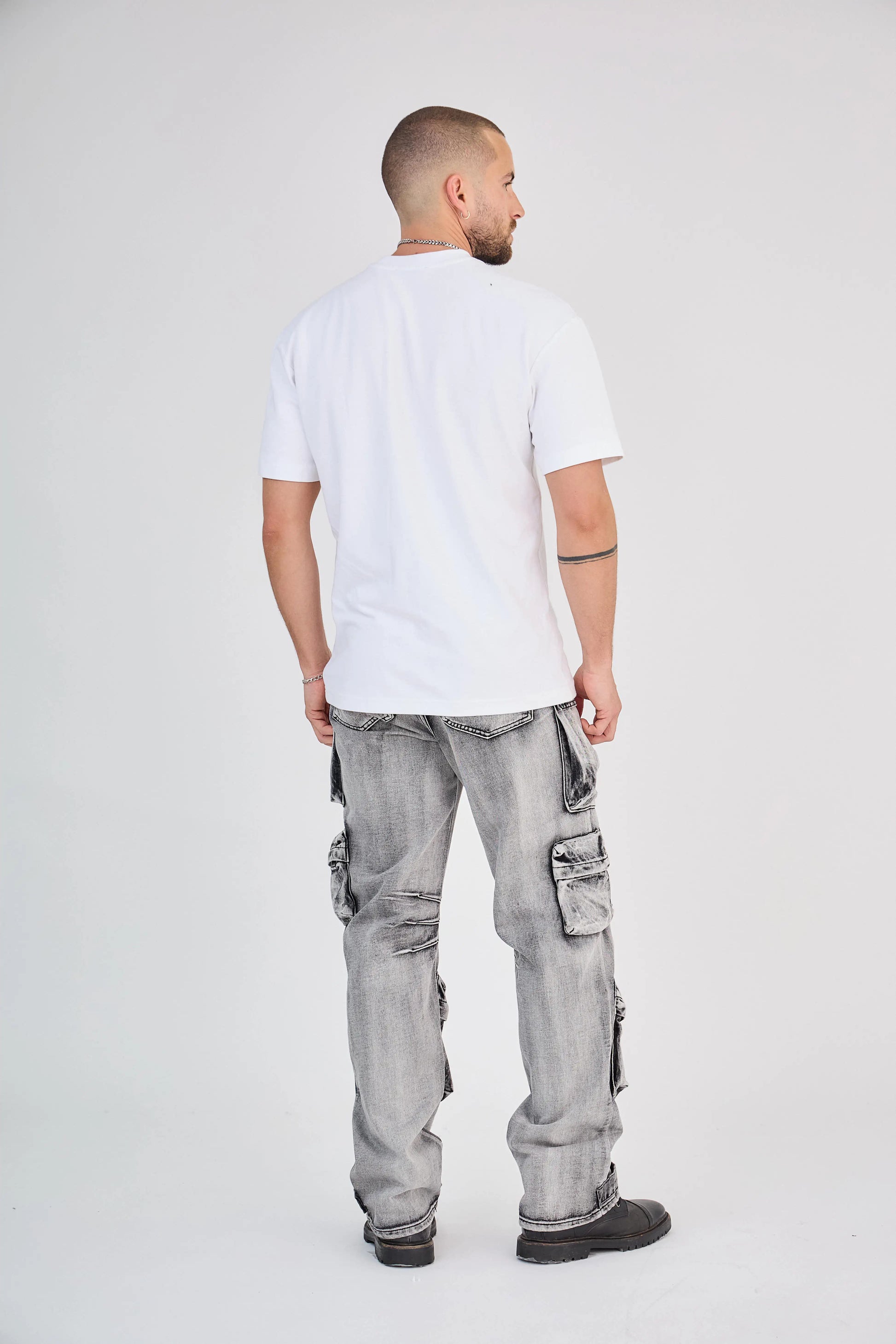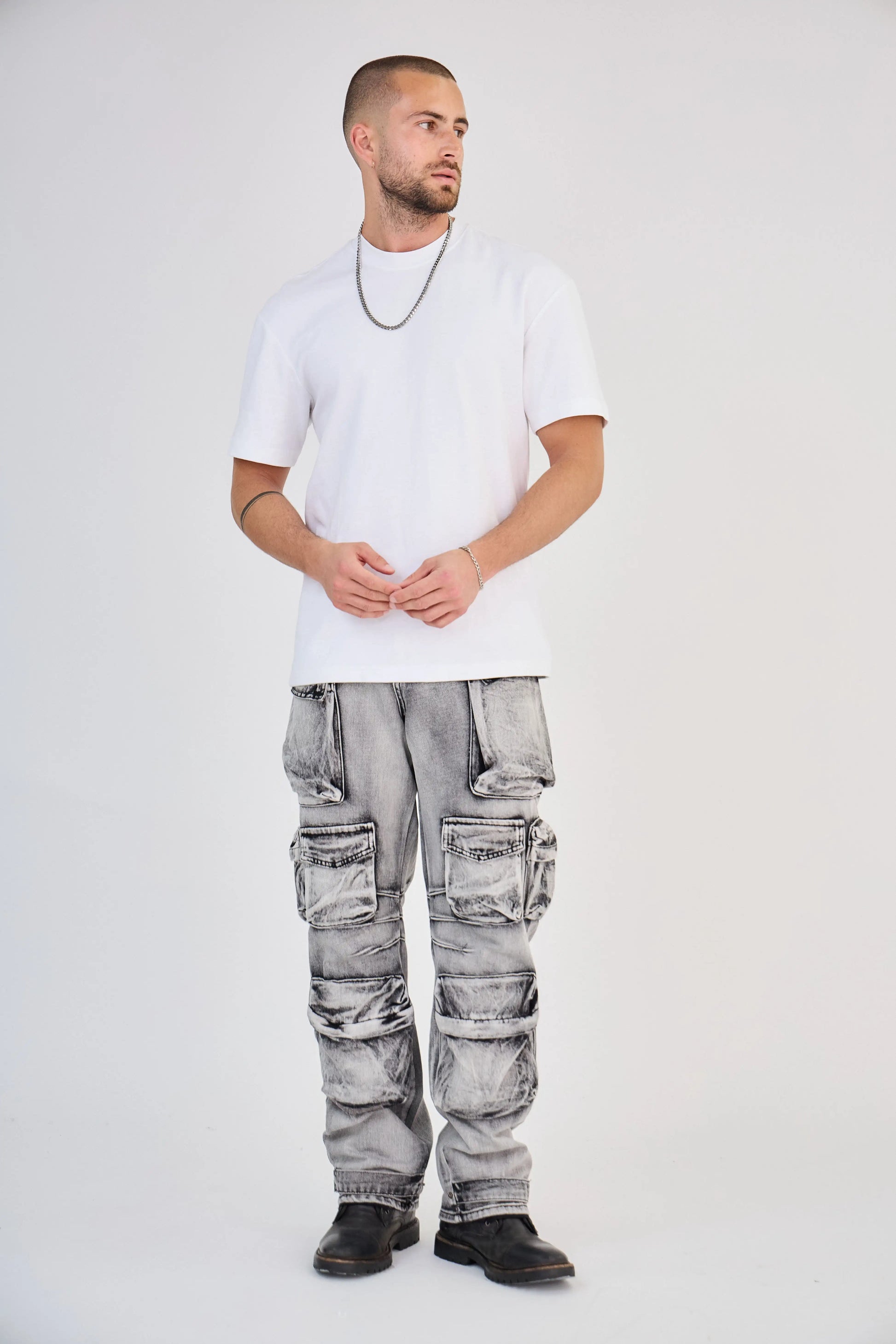 Jean Cargo Multi-Poches Délavé Gris Clair