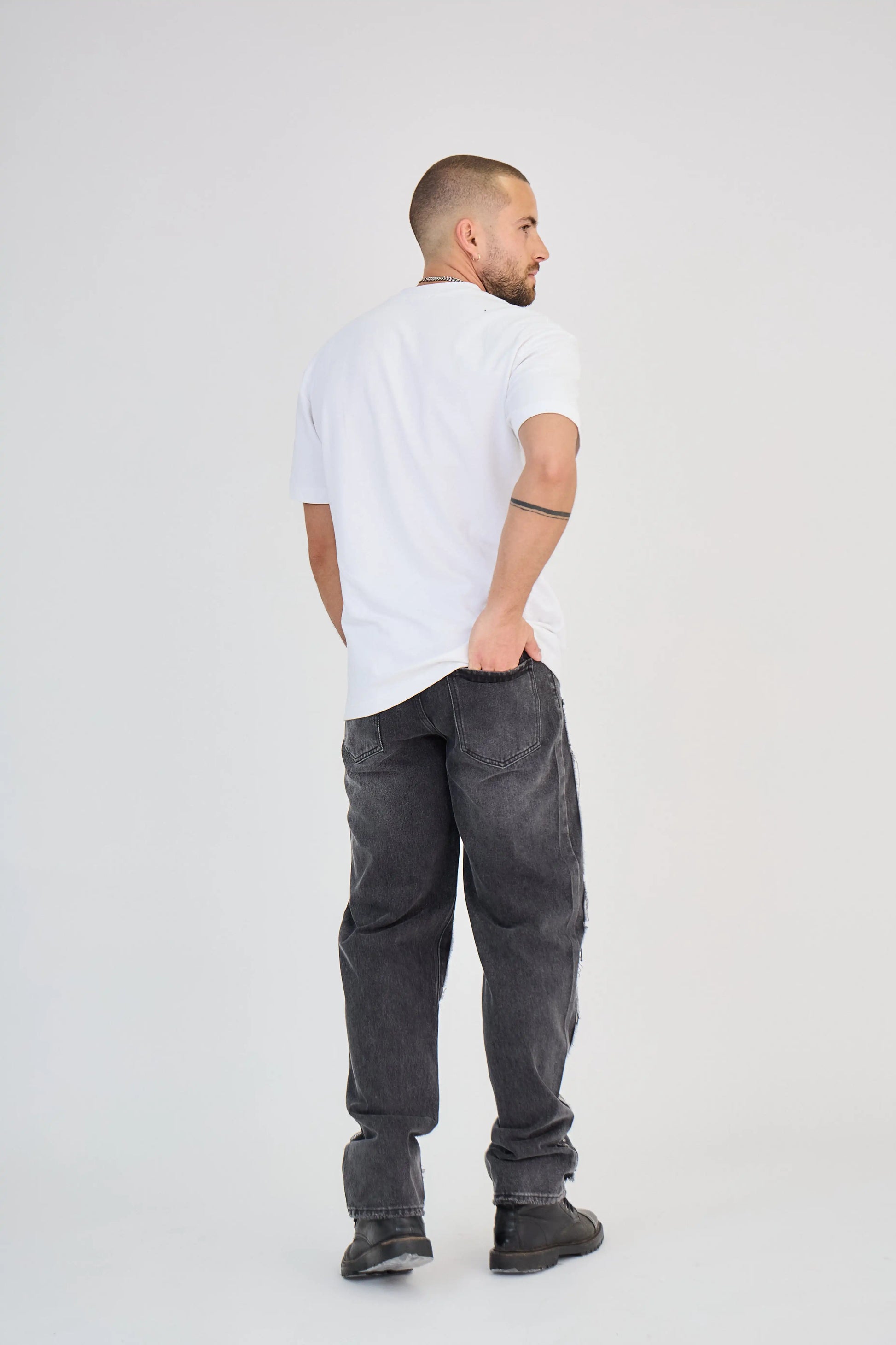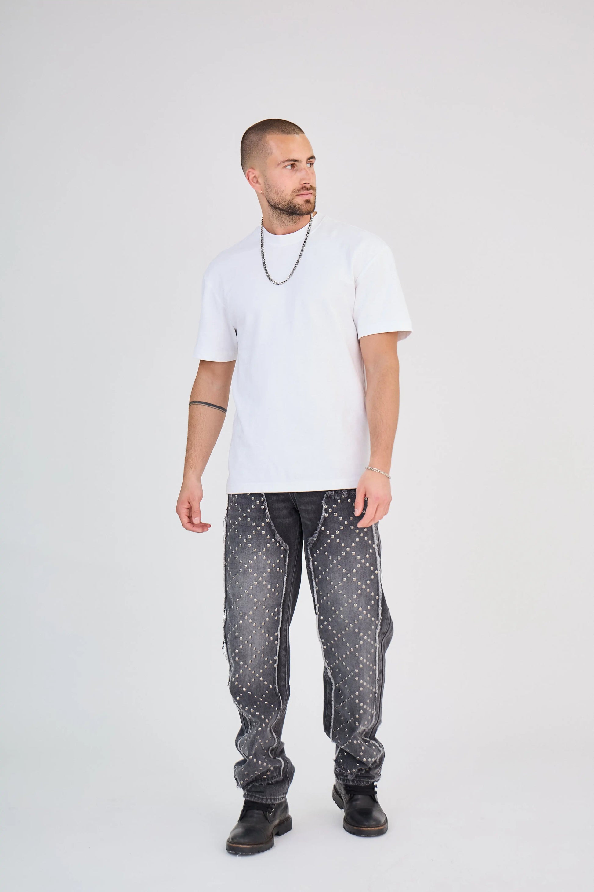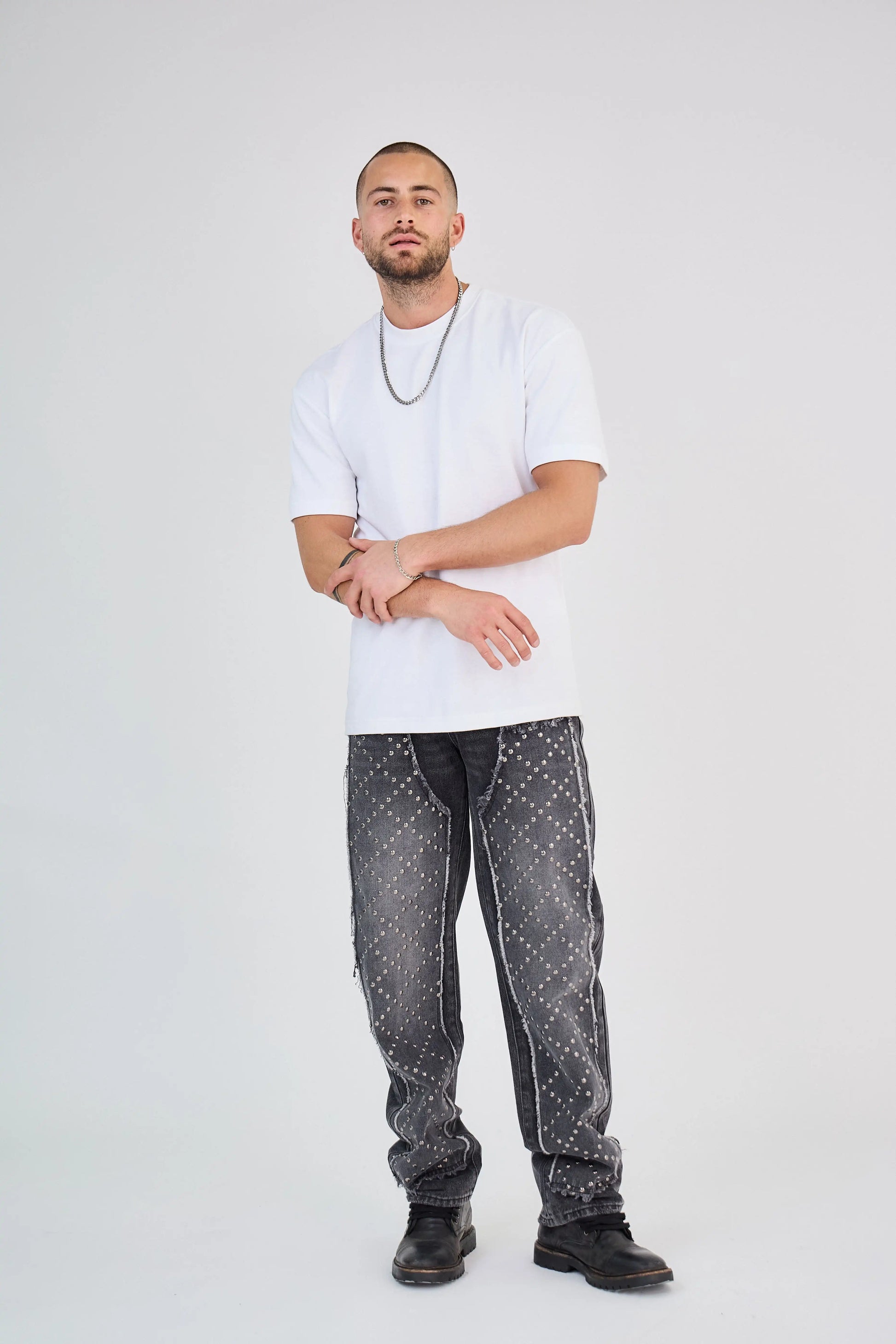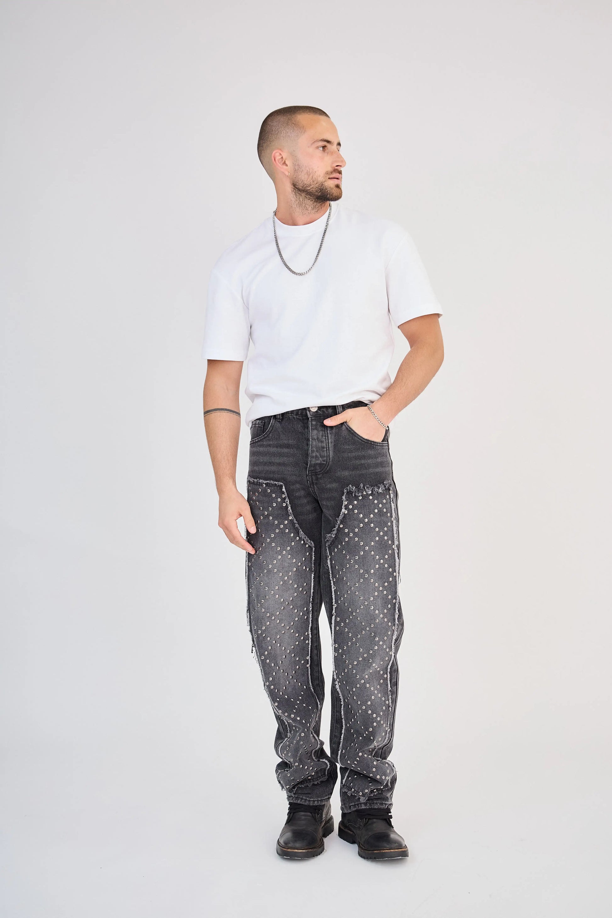 Jean Droit Clouté Noir Gris Délavé Moyen