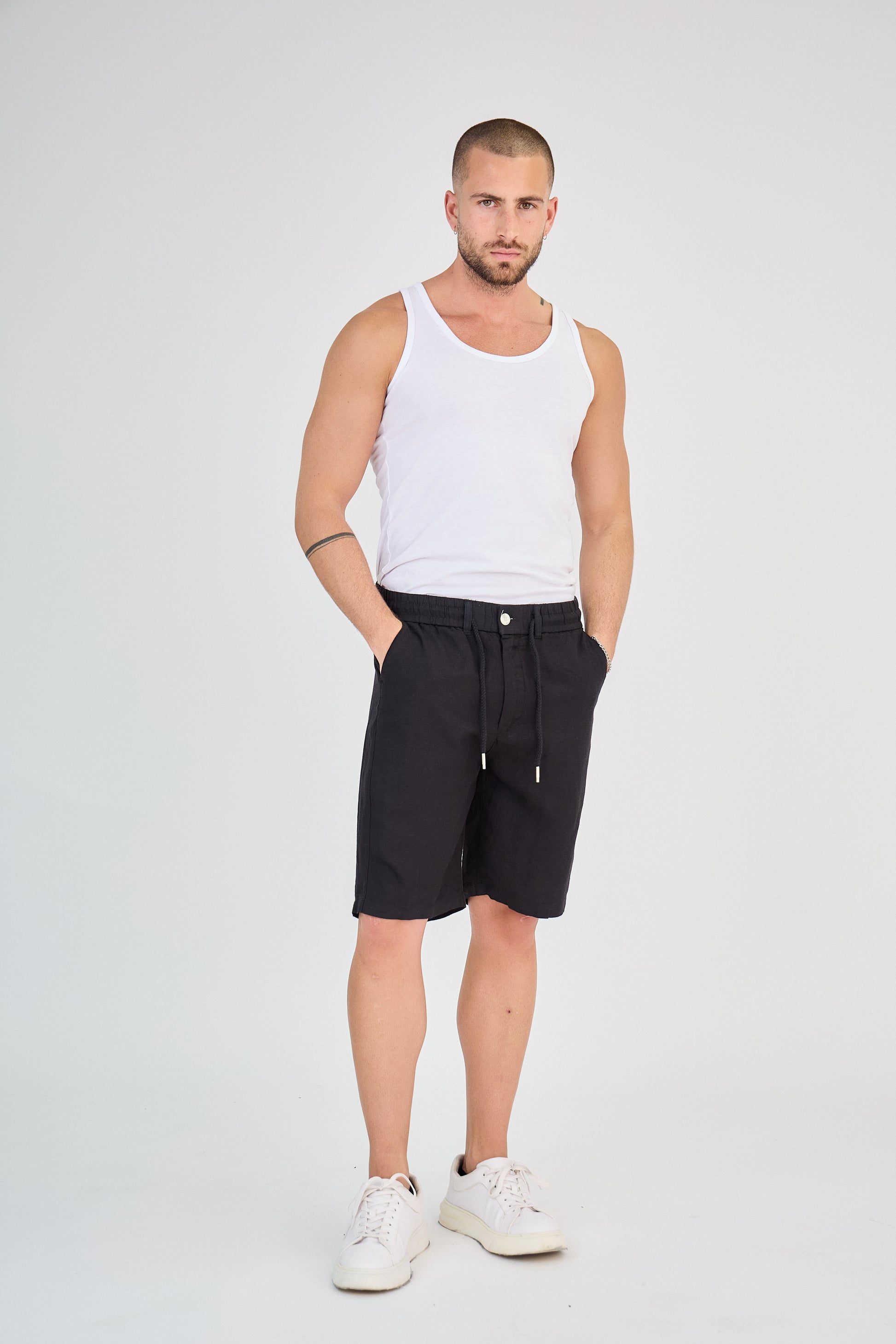 - Short en lin à taille élastique avec cordon