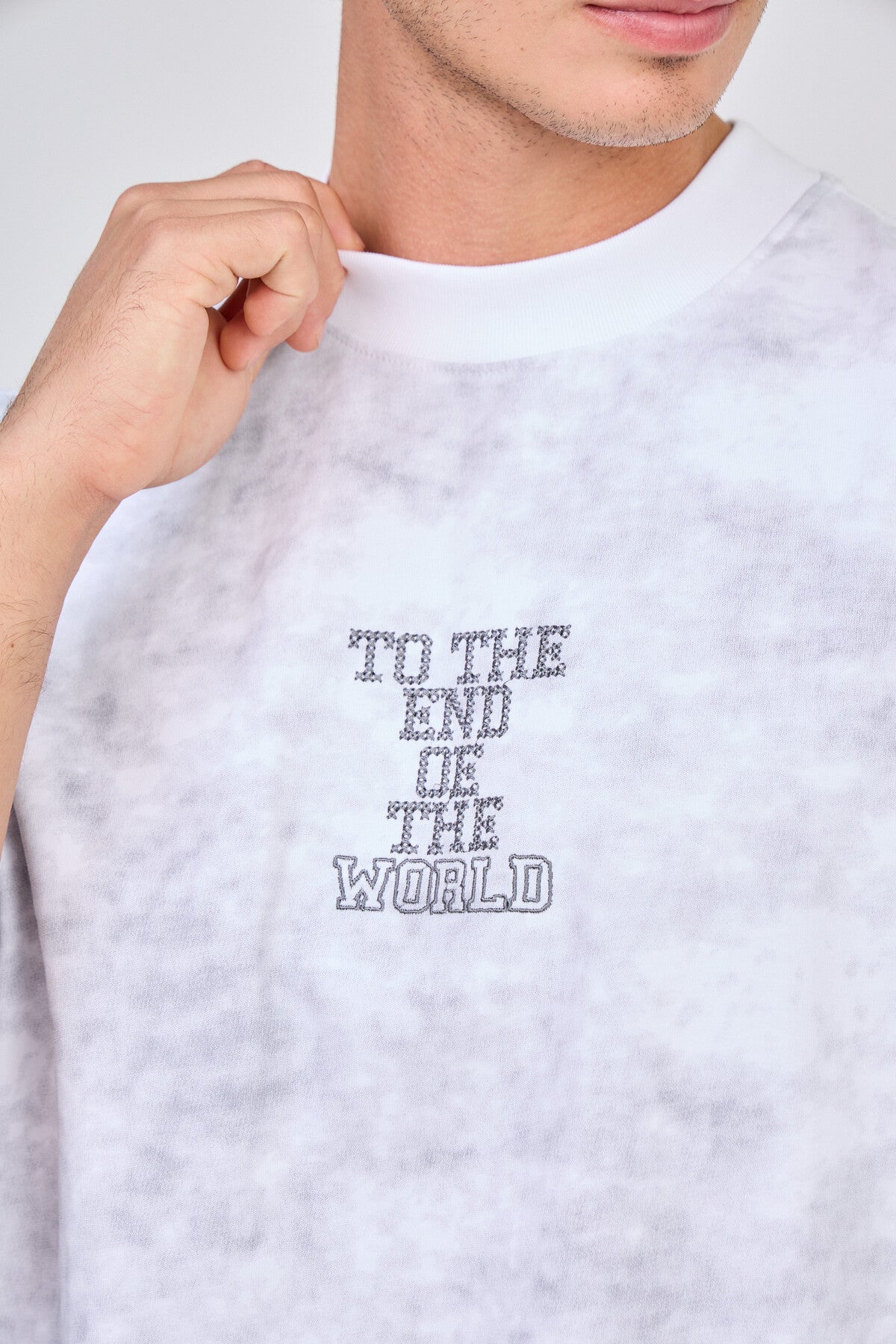 - Design style délavé orné d'une inscription blanche contrastante sur le devant, apportant une touche graphique et moderne.