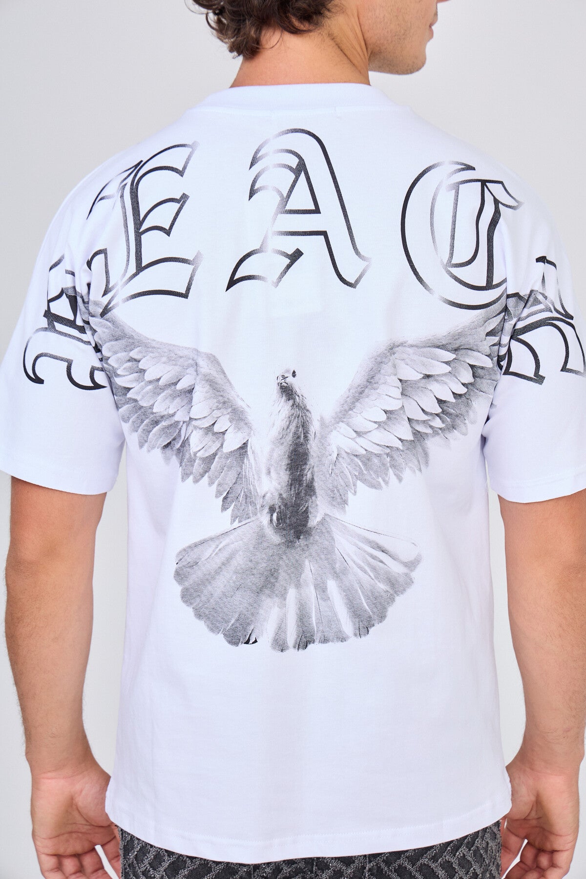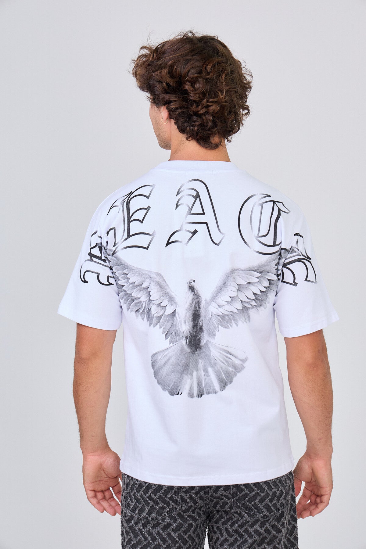 - Design uni, imprimé « Peace »devant et « Peace avec une colombe » au dos.